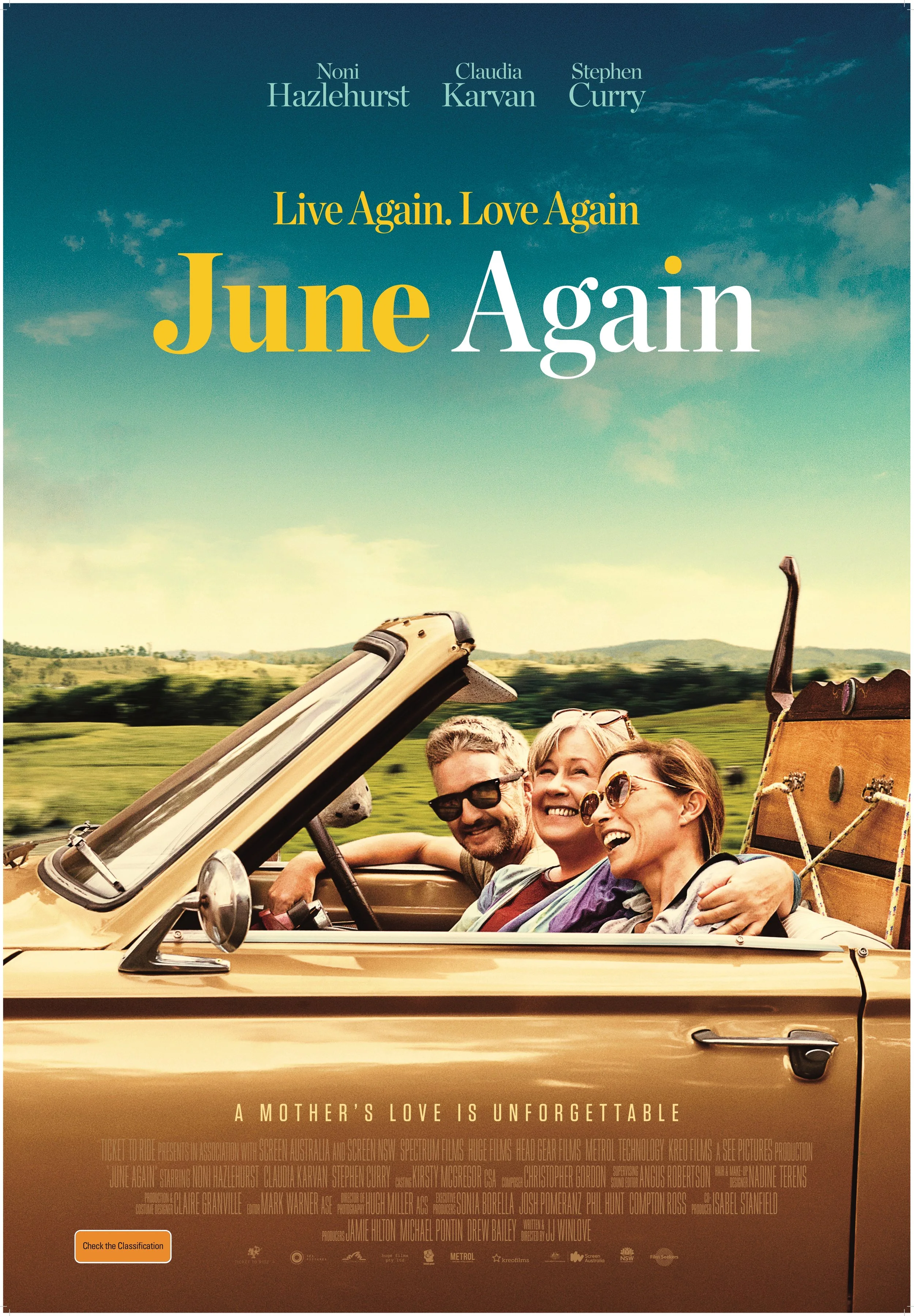 June Again is a heartfelt comedy about June (Hazlehurst) who, after a medical miracle, has just a few days to bring together her estranged children (Karvan and Curry), save the family business, and rekindle an old flame.
